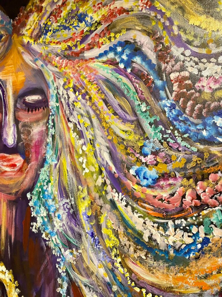 Olen lapsesta asti rakastanut taidetta; piirtämistä, maalaamista, savitöitä, rakentamista, sisustamista, luonnossa liikkumista, meikkejä, musiikkia, tanssimista.. Luova puoleni onkin seurannut minua etsiessäni paikkaani työelämässä ja elämässä muutoinkin. Luovuuteni tuntui olevan hetkellisesti kadoksissa kiireisen arjen keskellä, kunnes 2021 pitkään jatkuneiden tutkimusten jälkeen minulla todettiin kilpirauhasen syöpä. Sain tämän tiedon lääkäriltä puhelimitse, ajaessani autoa, asiakas kyydissä. Heti samana viikonloppuna aloin maalata. Syntyi ensimmäinen tunnetyöni, jonka mukaan myöhemmin nimesin myös esikoisnäyttelyni.
