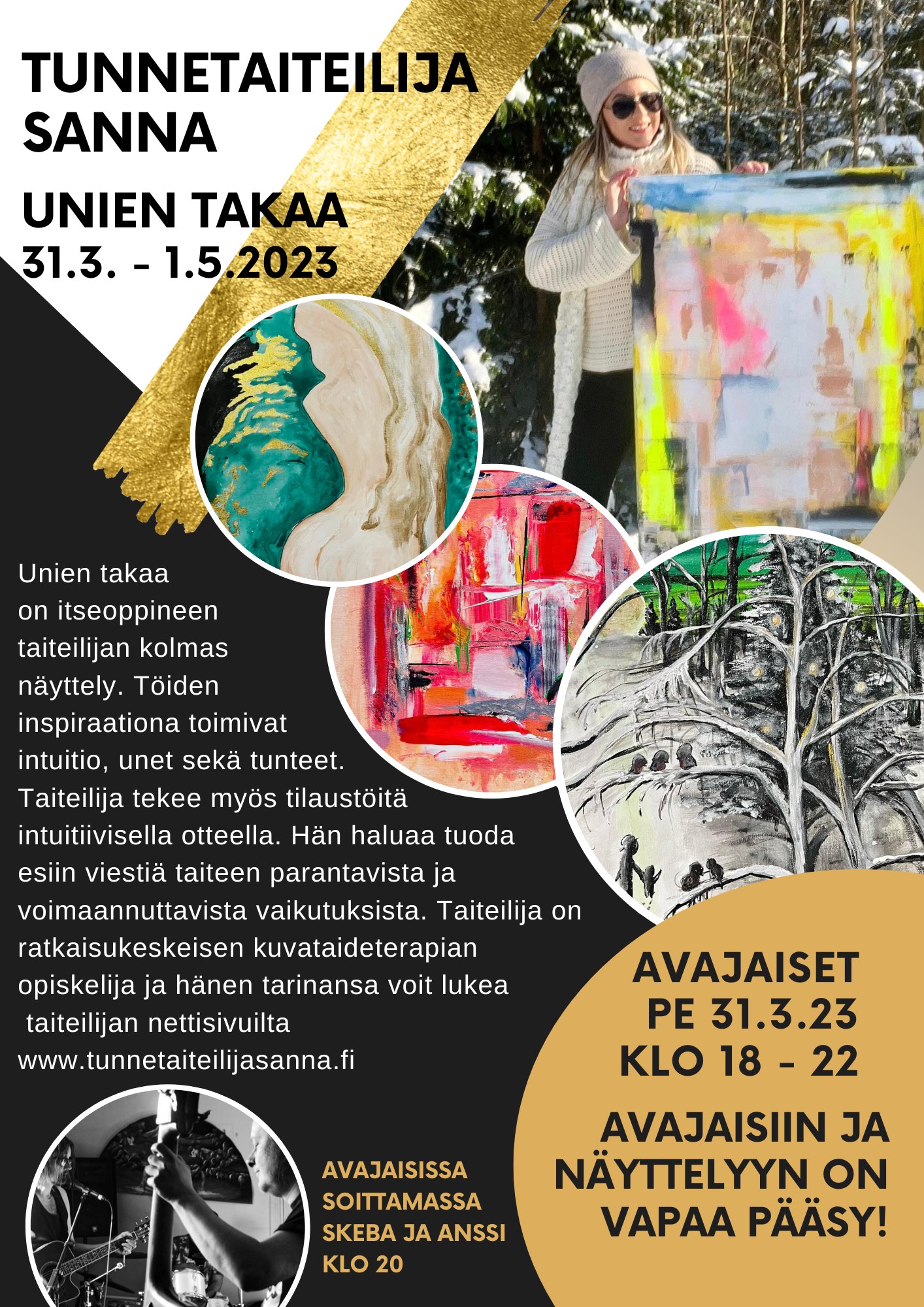 Melko nopealla aikataululla tarjoutui mahdollisuus myös uudelle näyttelylle Turussa ja otin tilaisuuden vastaan. Tämä näyttely järjestettiin Veistämö Wine bar:ssa 31.3 – 1.5. Näyttely kantoi nimeä ”Unien takaa” ja avajaisissa soittamassa olivat jälleen Skeba&Anssi. Tästä näyttelystä uuteen kotiin lähti 2 työtä.