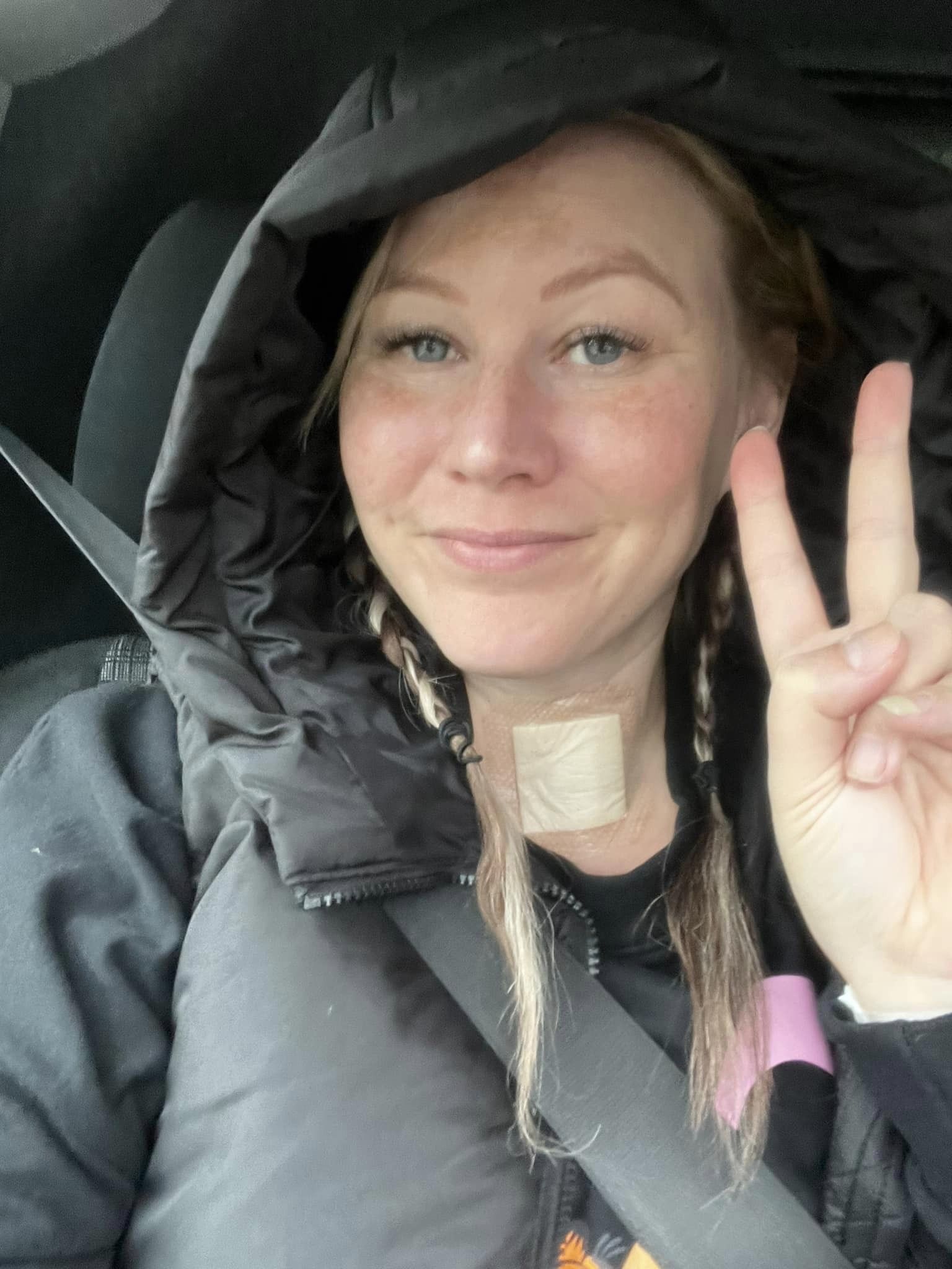 Syöpäleikkaukseni toteutettiin lokakuussa 2023 paikallispuudutuksessa, koska raskauden vuoksi minua ei voinut nukuttaa. Leikkaus onnistui suunnitellusti ja pääsin kotiin toipumaan. Ajattelin, että saan vihdoin keskittyä raskauteen ja aloittaa uuden onnellisen elämänvaiheen. Aloitin työpaikallani myös ensimmäisen taideterapiaryhmän. Lähdimme aviomieheni kanssa reissulle Mauritiukselle Afrikkaan ja järjestimme tunnelmallisen joulun sukulaisille kotonamme.