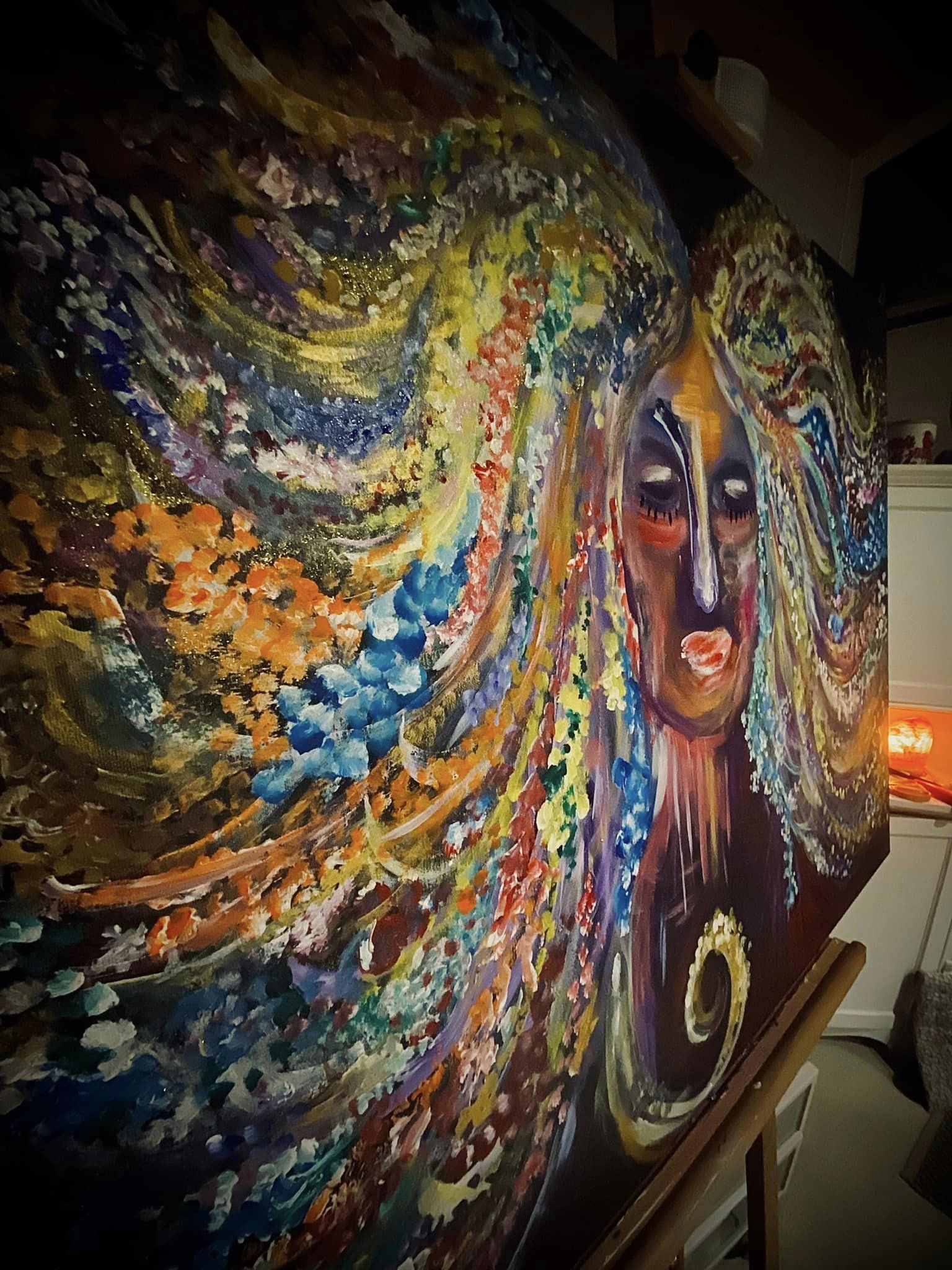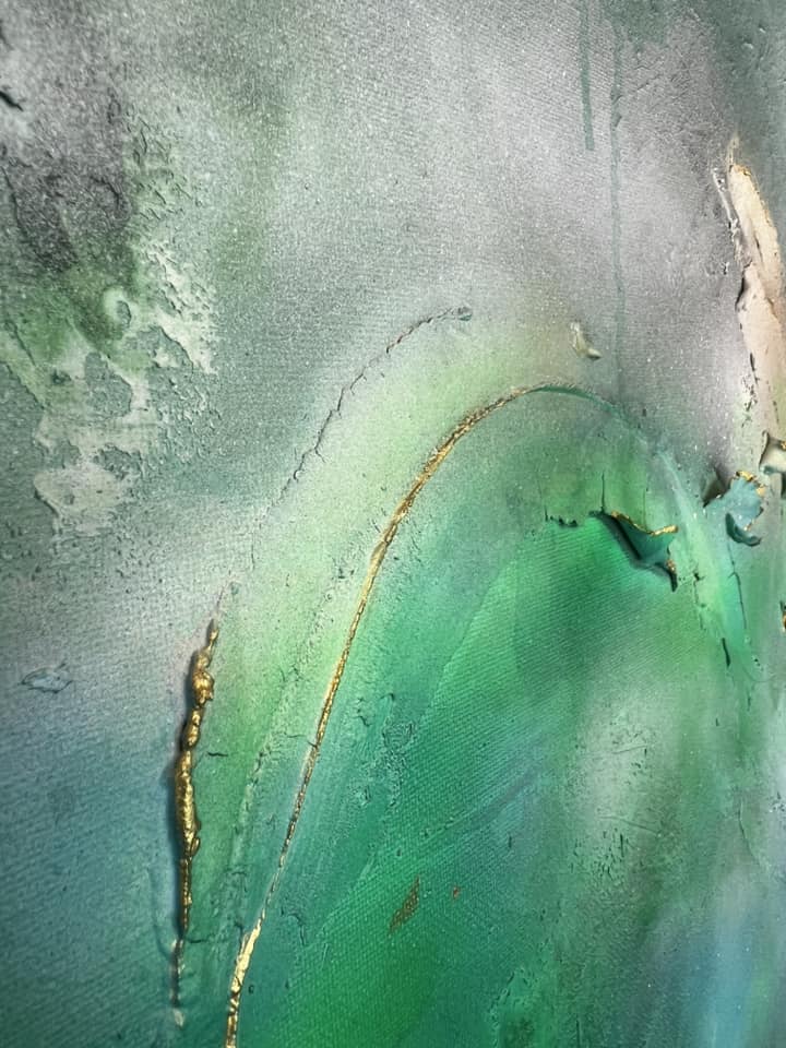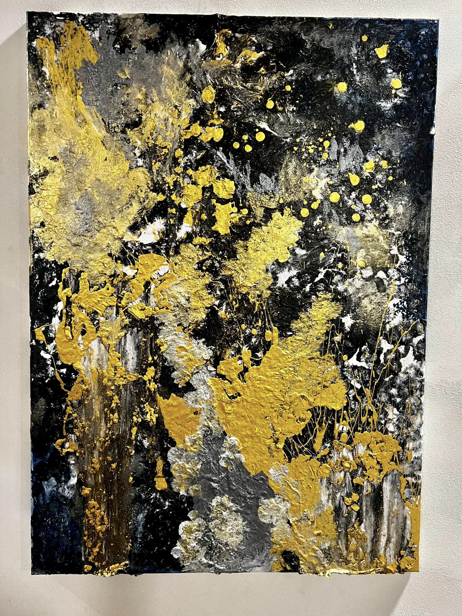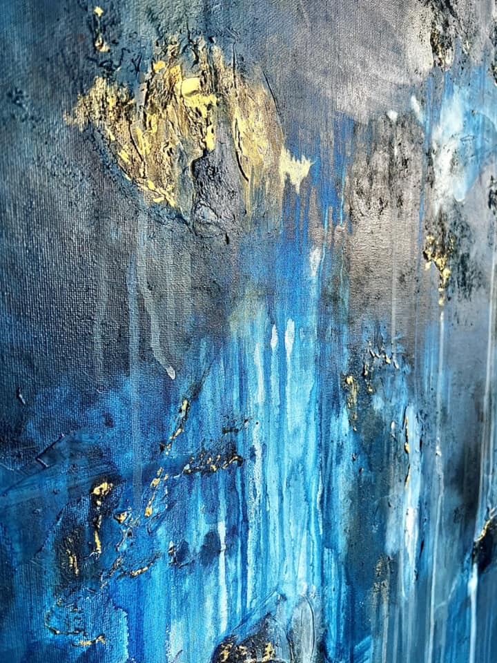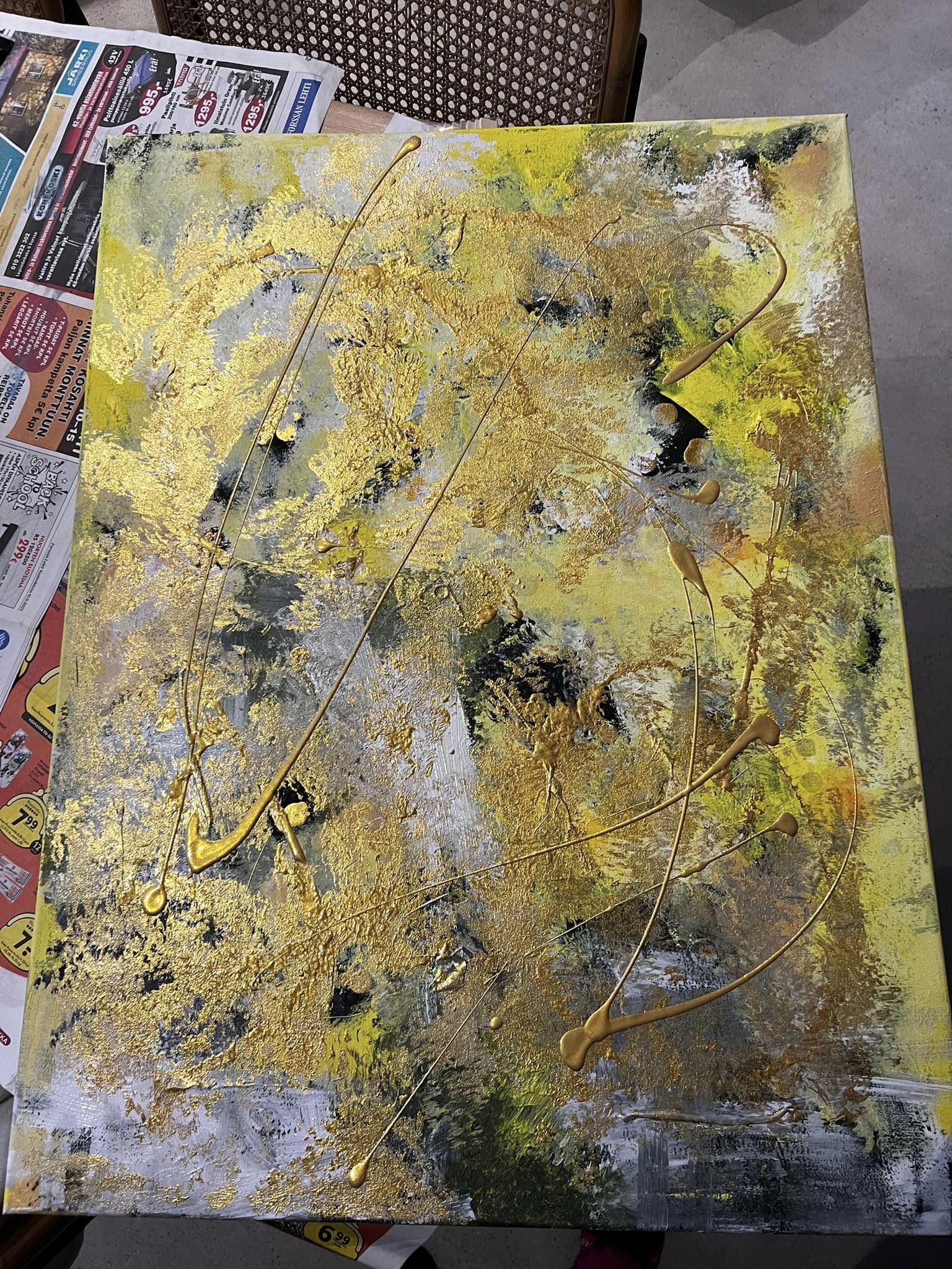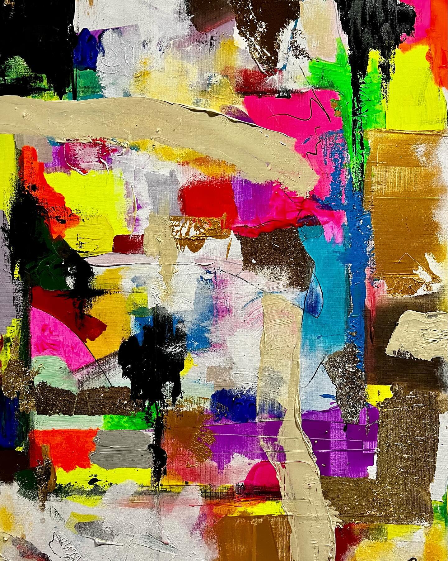 Elämän värit. Canvas. Akryyli & sekatekniikka. Sisältää lehtikultaa. Koko 60×80.