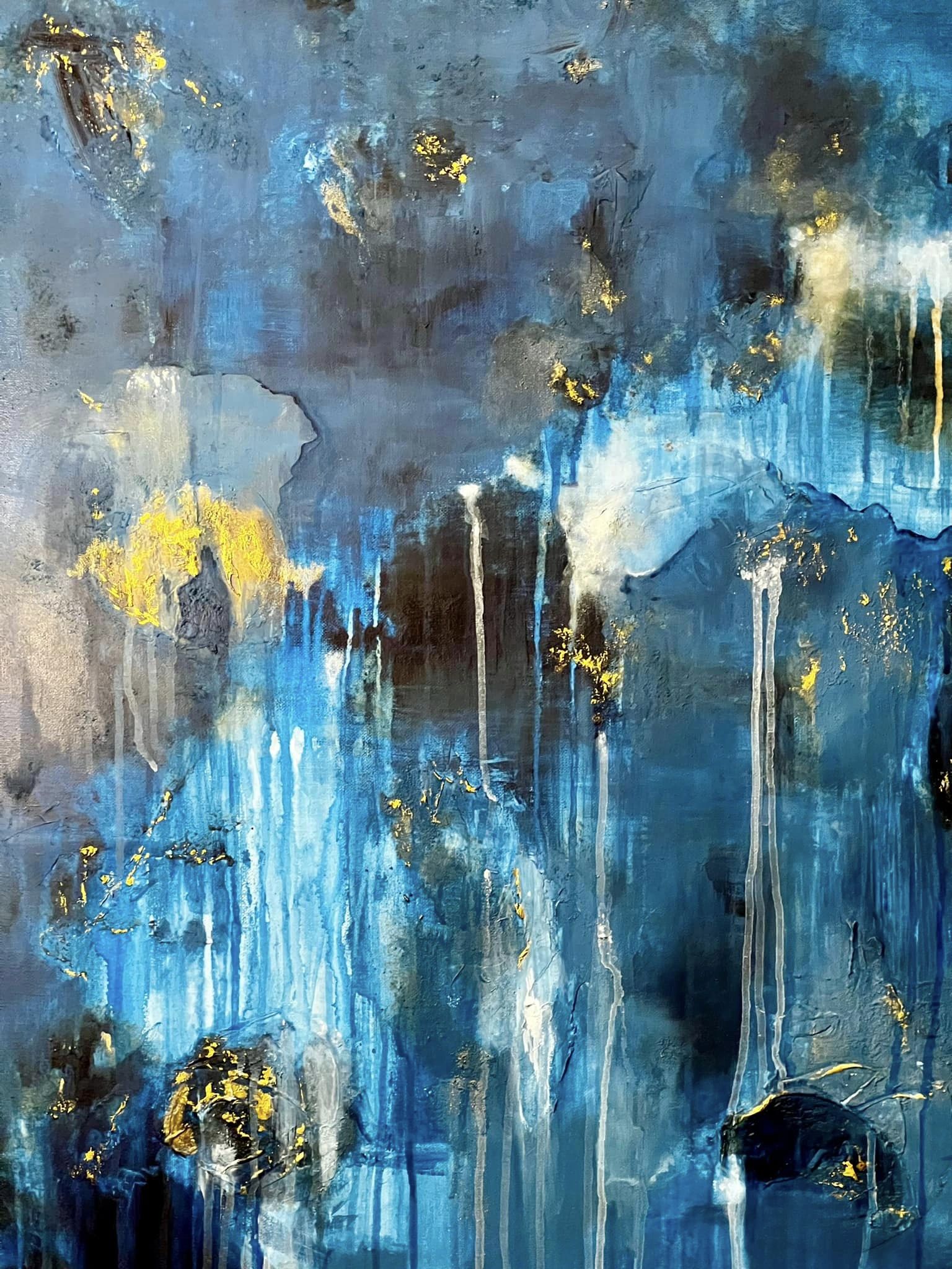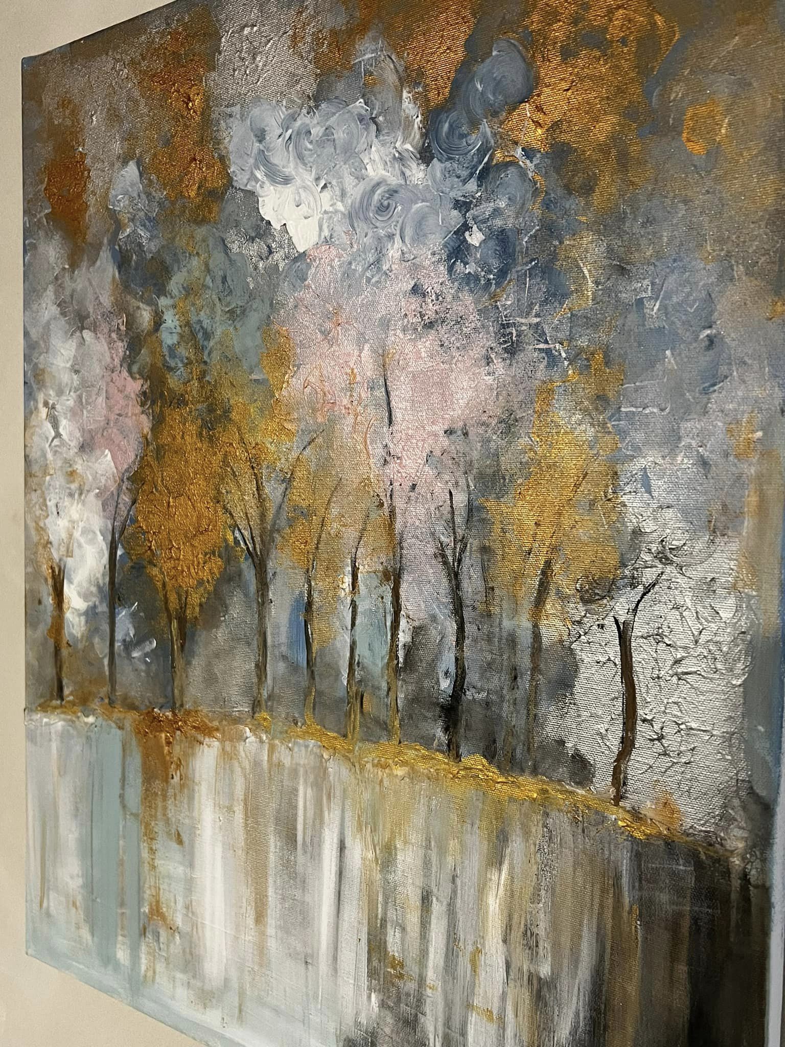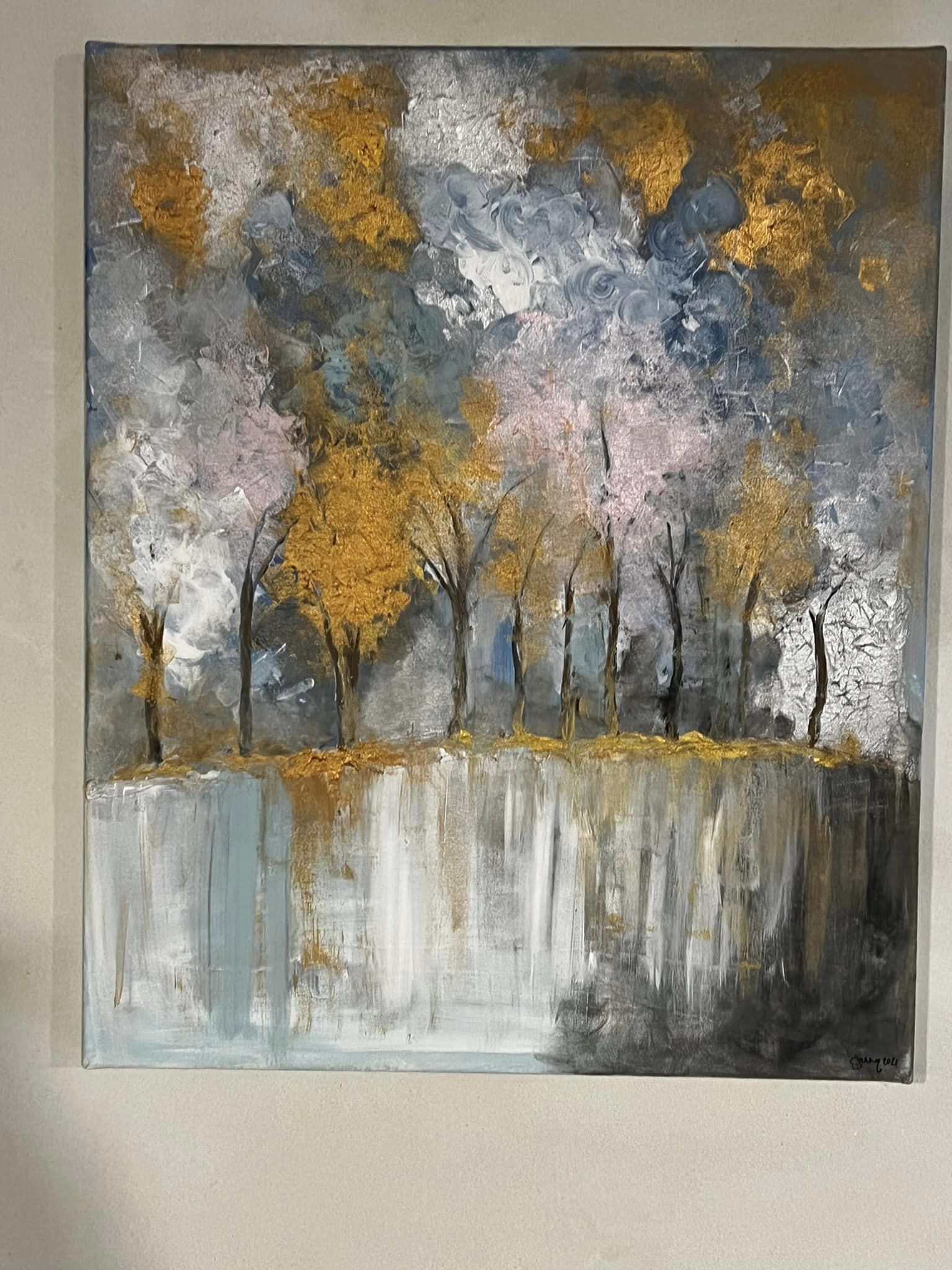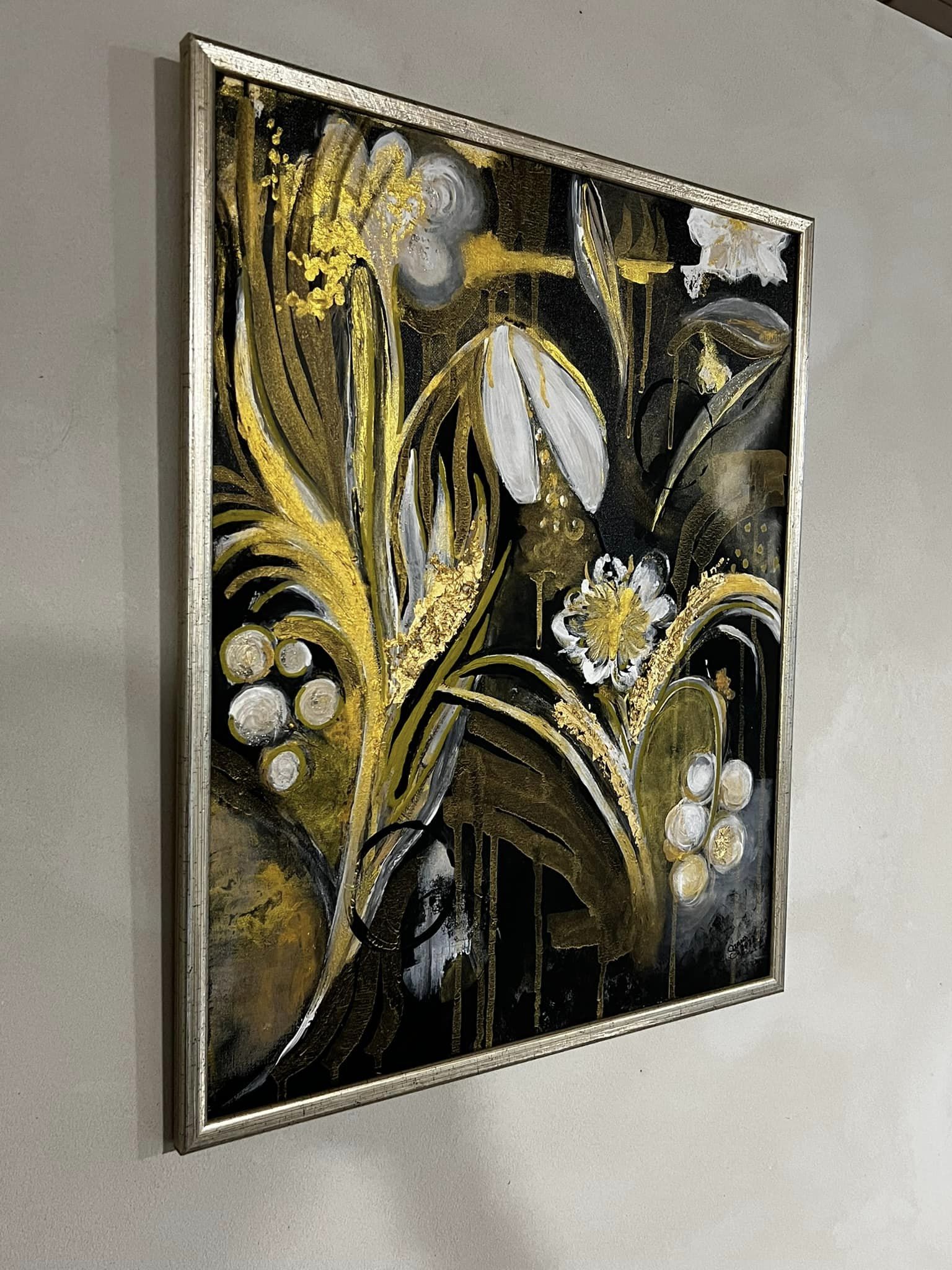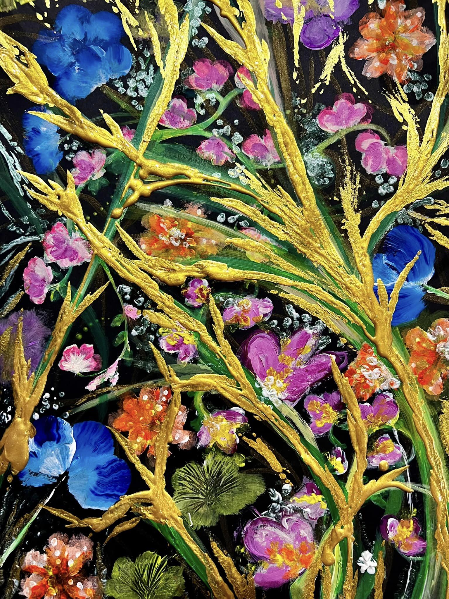 Elämän värit. Canvas. Akryyli & sekatekniikka. Sisältää lehtikultaa. Koko 60×80.