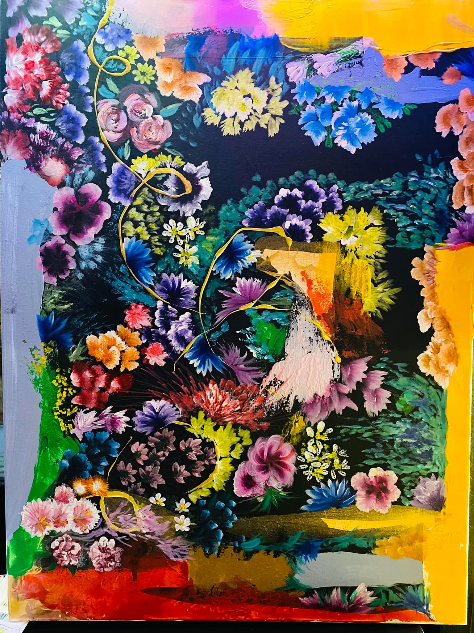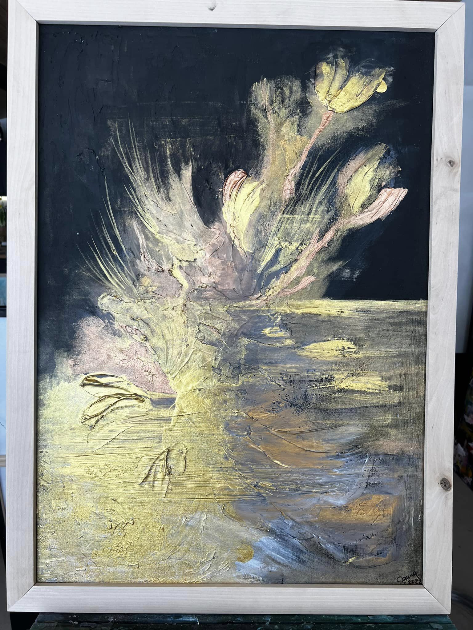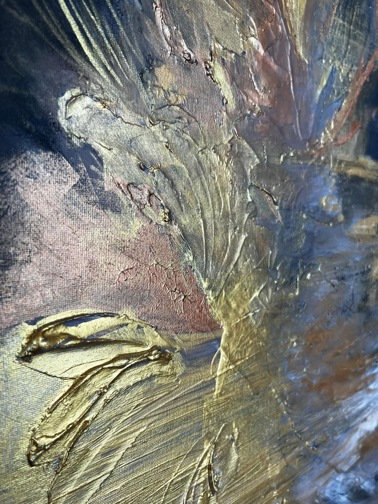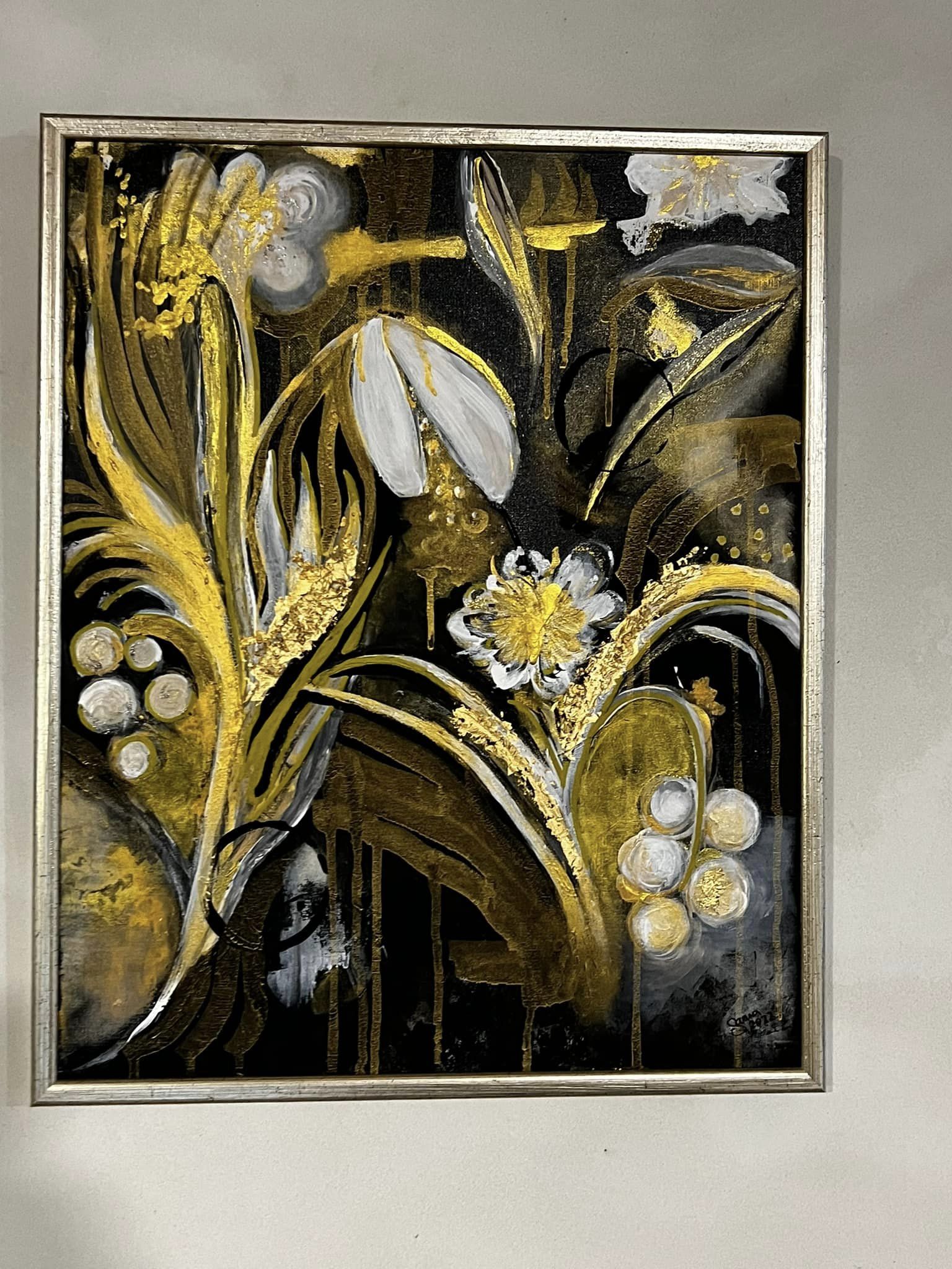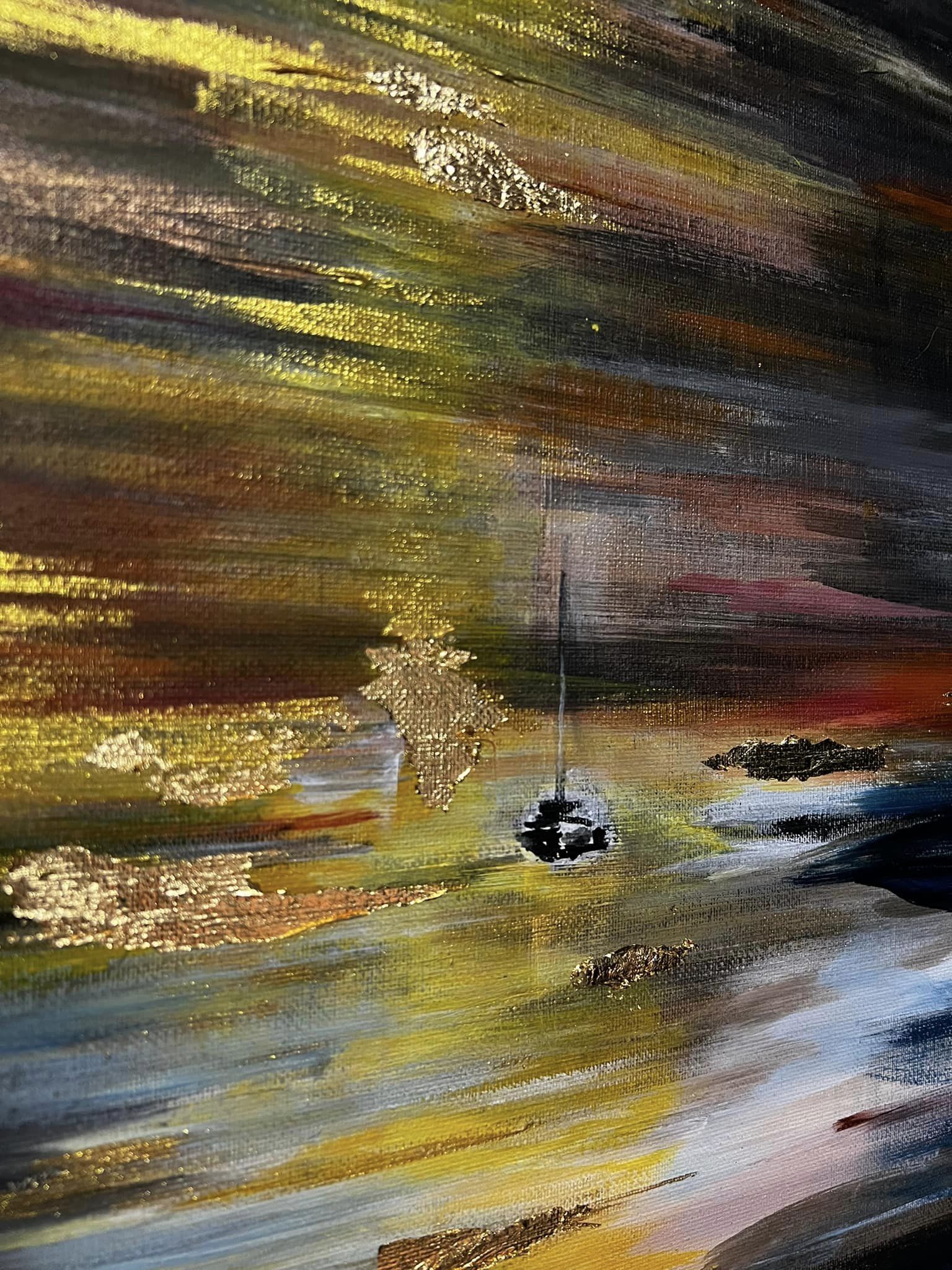 Elämän värit. Canvas. Akryyli & sekatekniikka. Sisältää lehtikultaa. Koko 60×80.