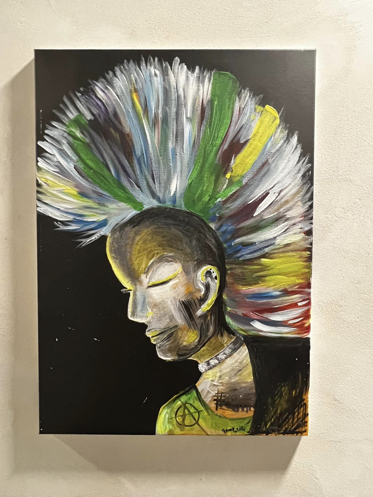 Punk’s not dead on ensimmäisen näyttelyni töitä. Canvas. Akryyli. Koko 60×80.