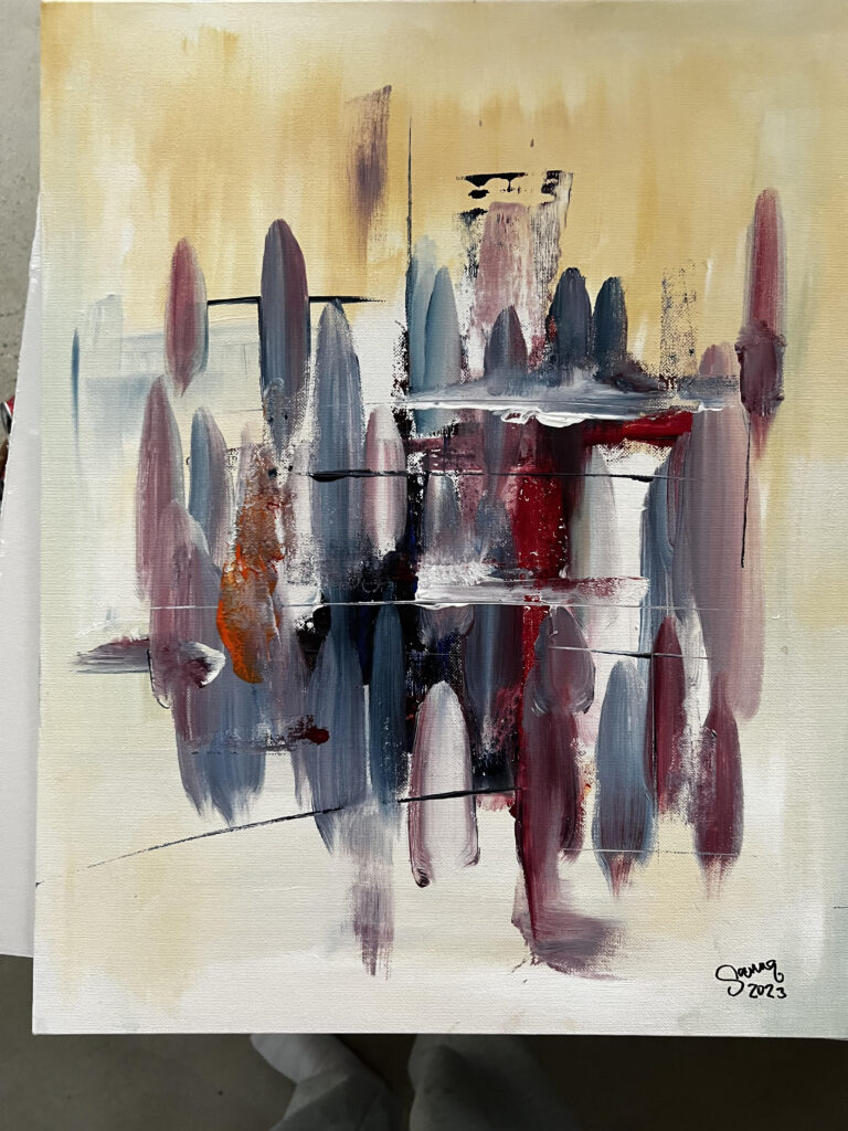 Here I come on myös yksi ensimmäisen näyttelyni töistä. Canvas. Akryyli. Koko 50×70.