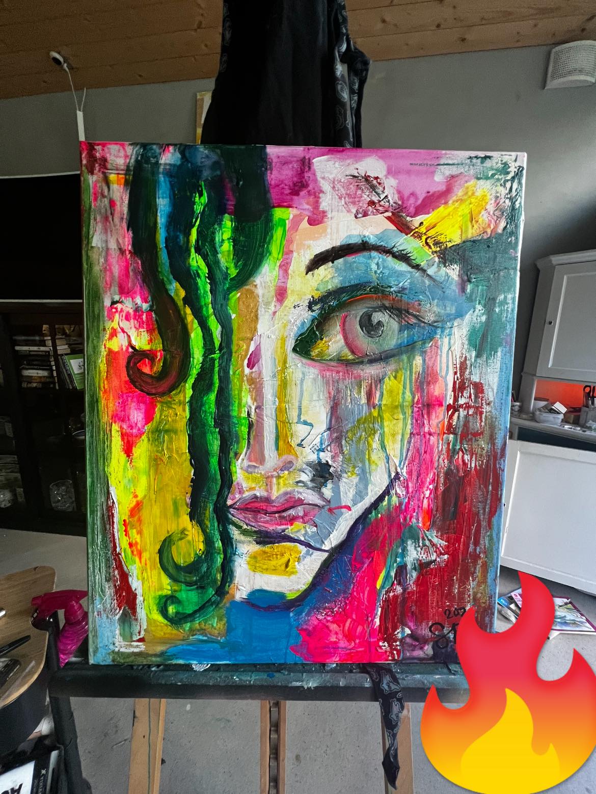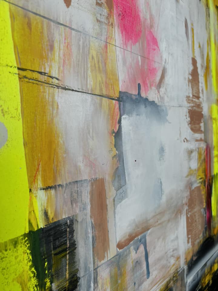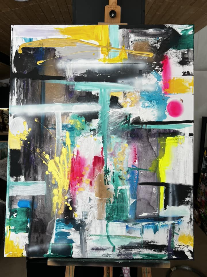 Forgive DISCO. Akryyli/sekatekniikka. Canvas 40×50.