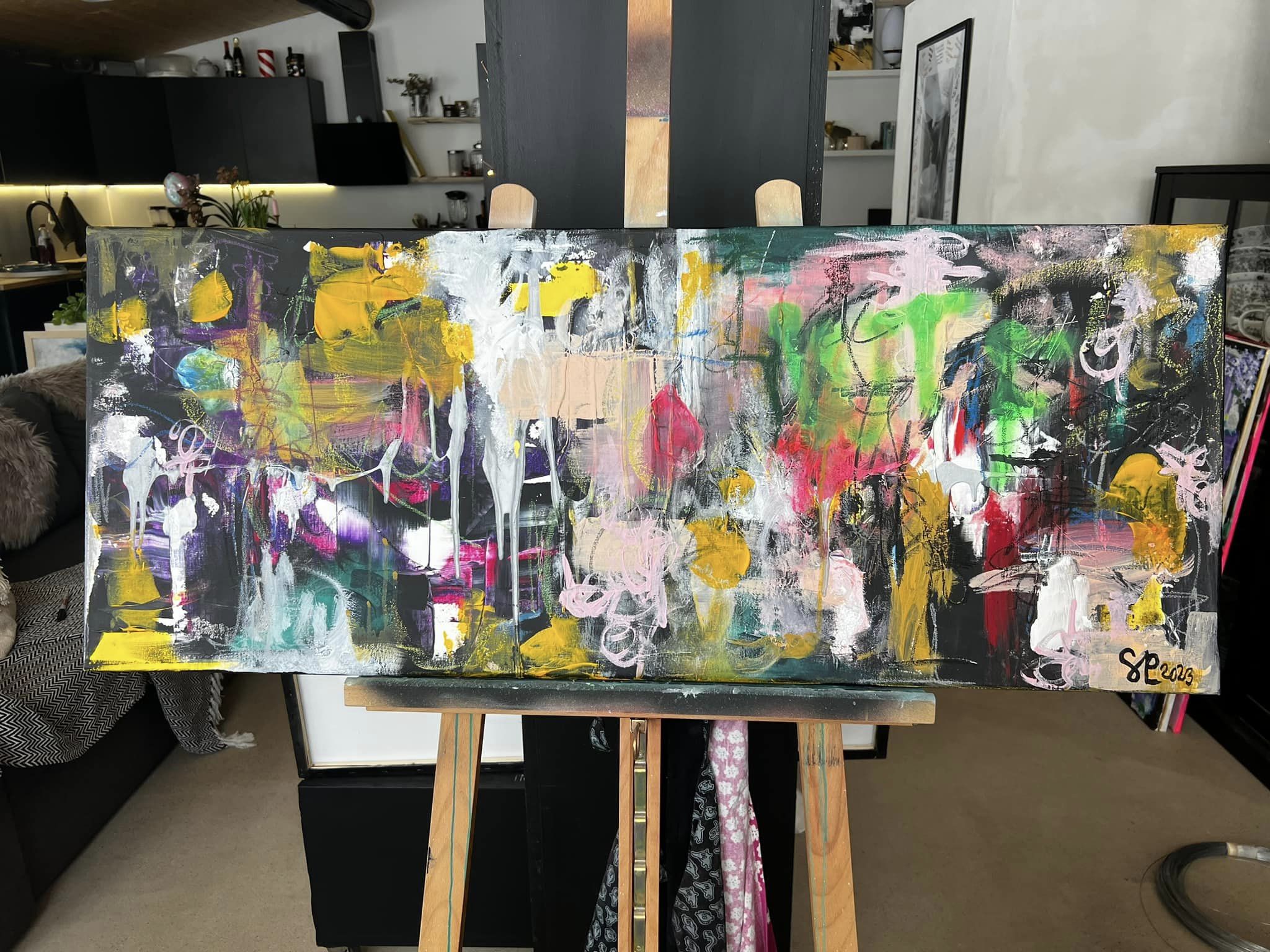 Elämän kaaos. Canvas. Akryyli/sekatekniikka. Koko 80×100.