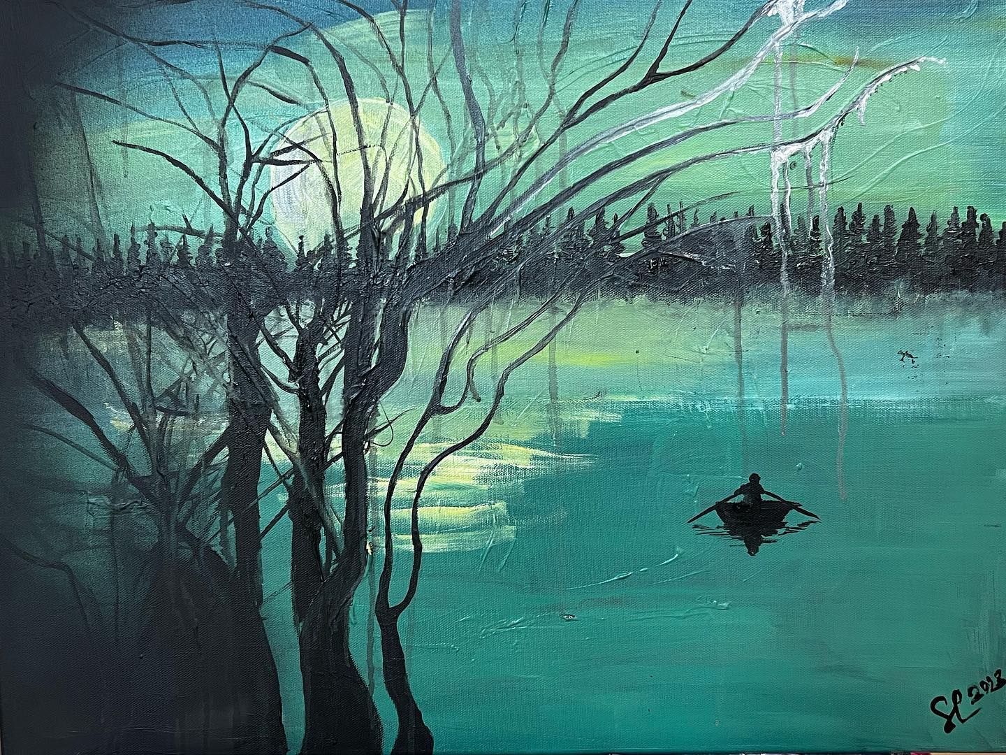 Uneton yö. Canvas. Akryyli/sekatekniikka. Koko 80×100.